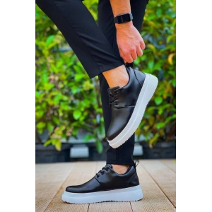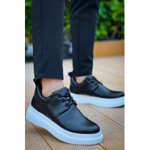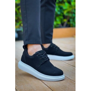 KB-X4 Kuback Siyah Cilt Yüksek Taban Bağcıklı Günlük Erkek Ayakkabı