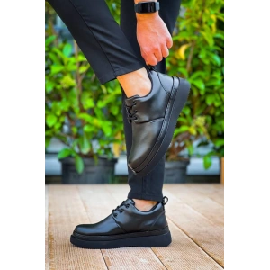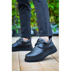 KB-X4 Kuback Siyah Cilt Siyah Yüksek Taban Bağcıklı Günlük Erkek Ayakkabı