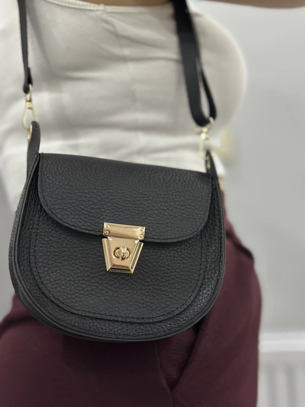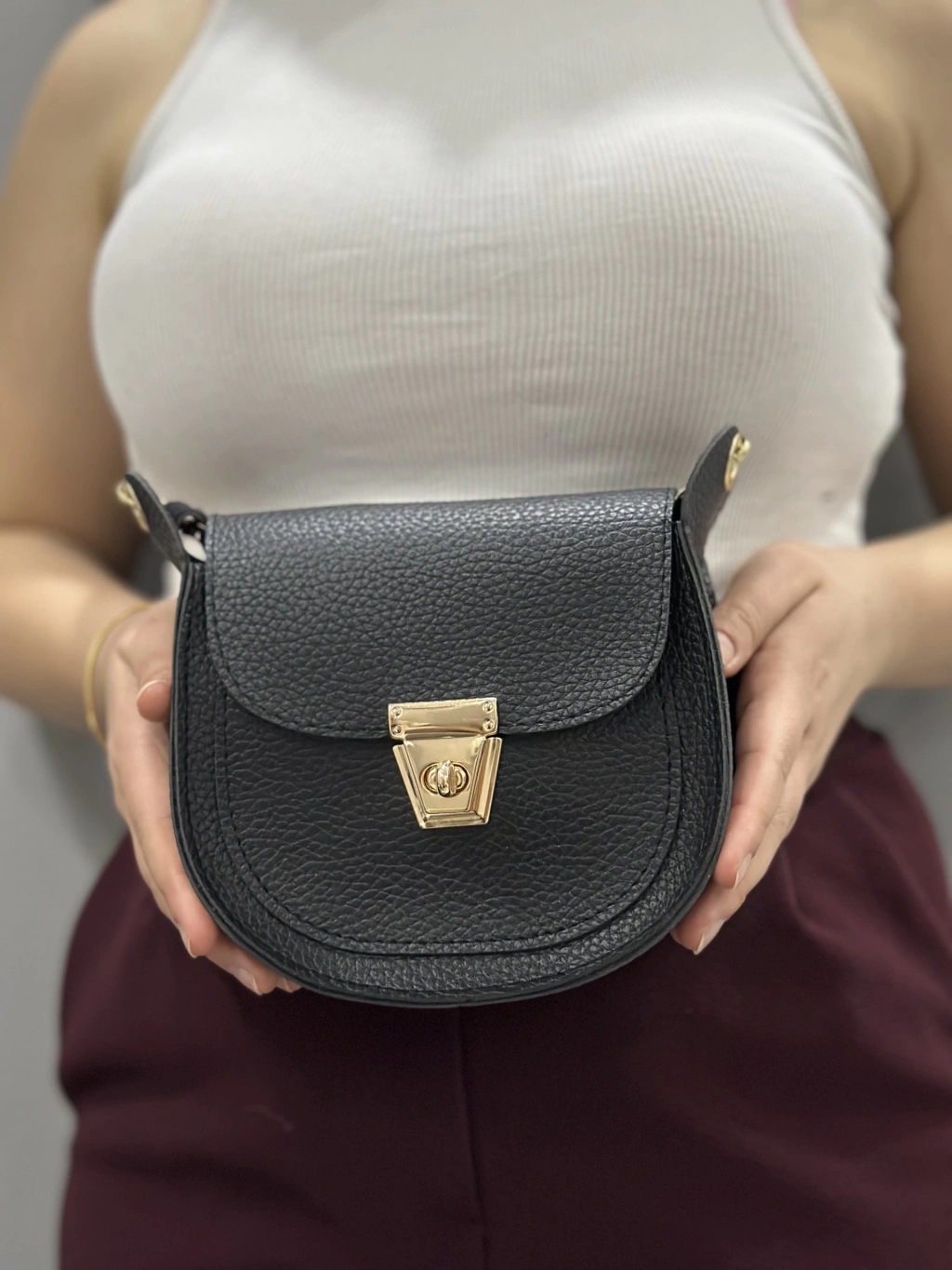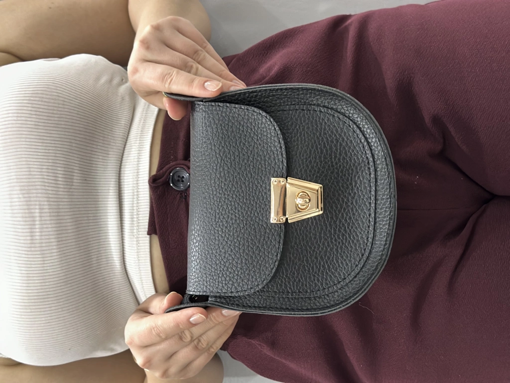Bu şık siyah cilt çanta, hem klasik hem de şık bir görünüm sunar. İster günlük kullanım için olsun, ister özel bir davet için, bu çanta her durumda tarzınızı tamamlayacak bir aksesuardır.