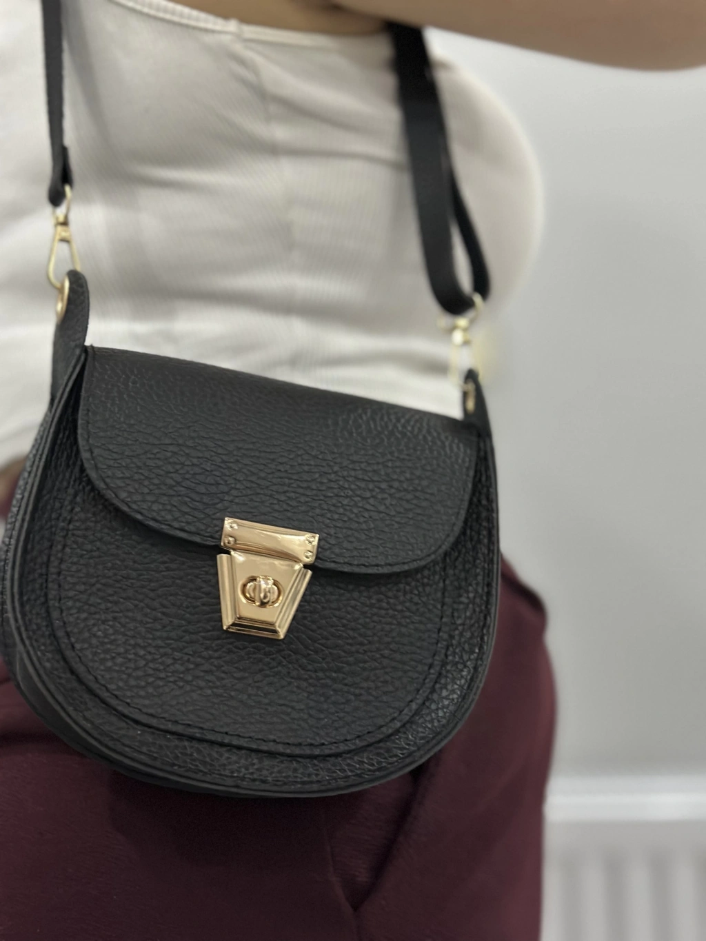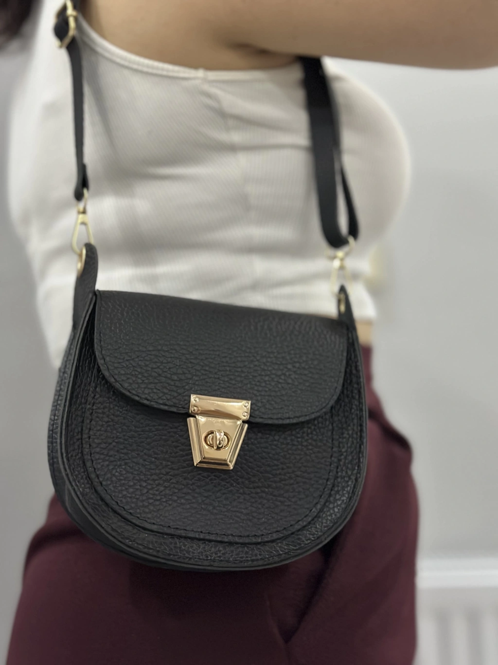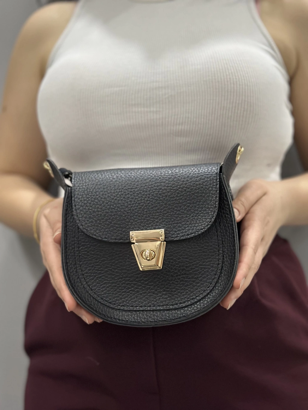Bu şık siyah cilt çanta, hem klasik hem de şık bir görünüm sunar. İster günlük kullanım için olsun, ister özel bir davet için, bu çanta her durumda tarzınızı tamamlayacak bir aksesuardır.
