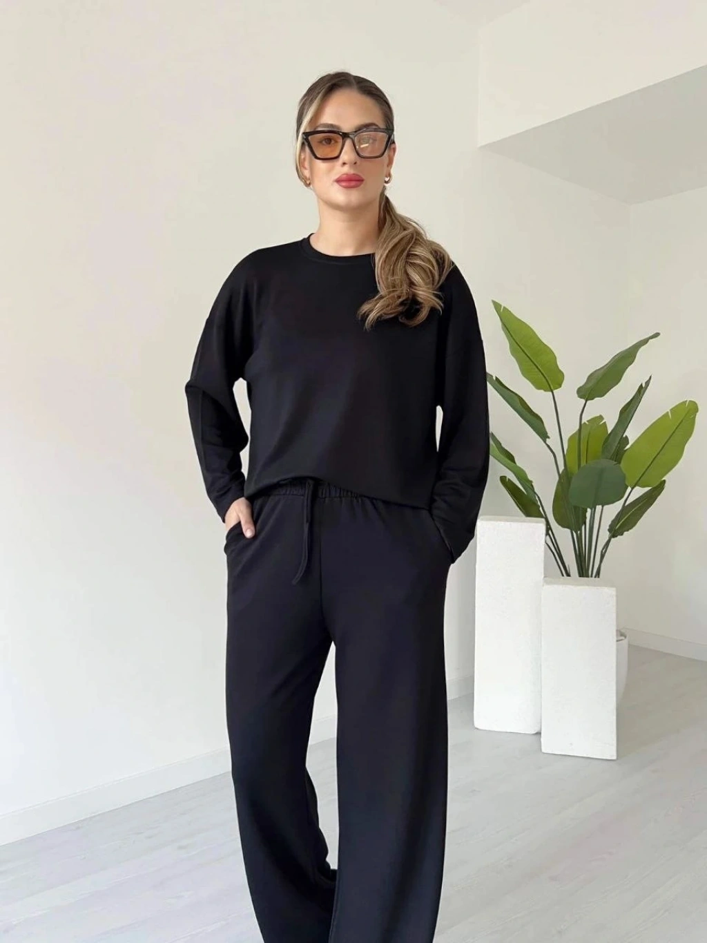 Trenç takım alt üst siyah ons