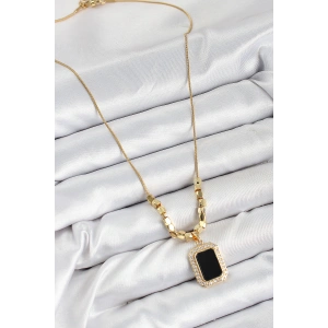 316L Çelik Zirkon Taşlı Siyah Baget Model Gold Renk Kadın Kolye