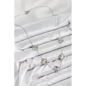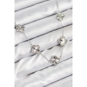 Pirinç VIP Yonca Model Gümüş Renk Kadın Kolye