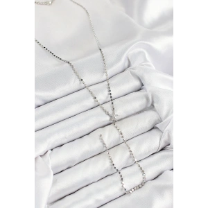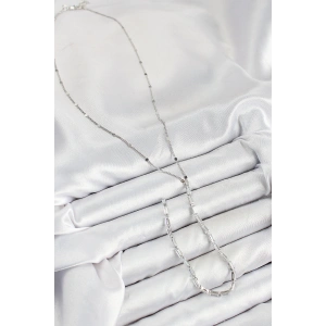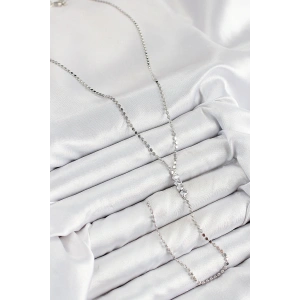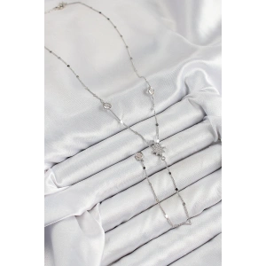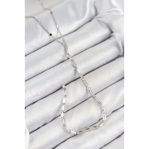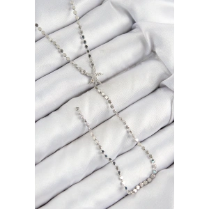 Pirinç Zirkon Taşlı Ezme Zincirli Model Gümüş Renk Y Kolye