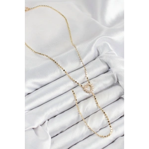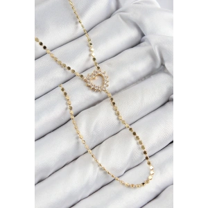 Pirinç Zirkon Taşlı Ezme Zincirli Kalp Model Gold Renk Y Kolye