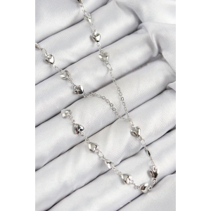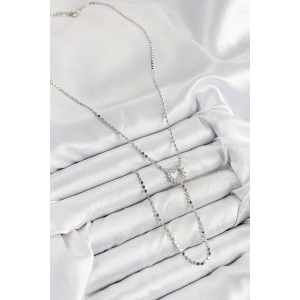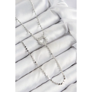Pirinç Zirkon Taşlı Ezme Zincirli Kalp Model Gümüş Renk Y Kolye