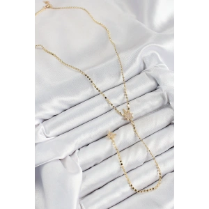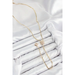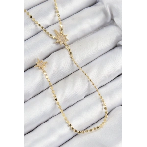 Pirinç Zirkon Taşlı Ezme Zincirli Kutup Yıldızı Model Gold Renk Y Kolye