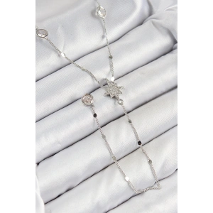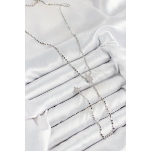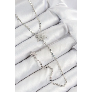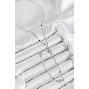 Pirinç Zirkon Taşlı Ezme Zincirli Deniz Yıldızı Model Gümüş Renk Y Kolye