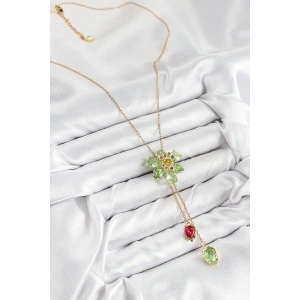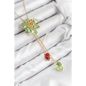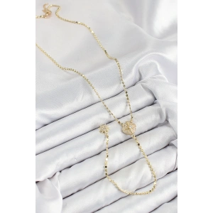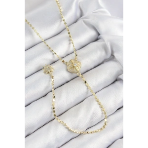 VIP Pirinç Zirkon Taşlı Çiçek Model Gold Renk Asansörlü Kadın Kolye