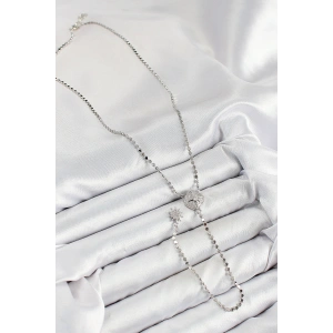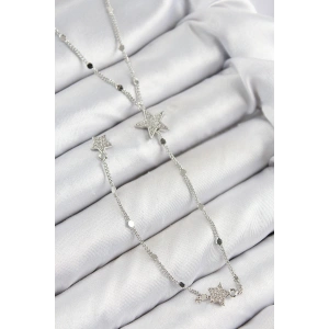 Pirinç Zirkon Taşlı Ezme Zincirli Kutup Yıldızı Model Gümüş Renk Y Kolye