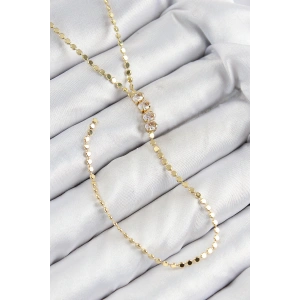 Pirinç Zirkon Taşlı Ezme Zincirli Model Gold Renk Y Kolye