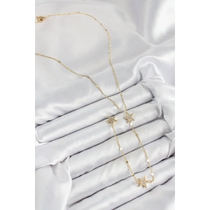 Pirinç Zirkon Taşlı Ezme Zincirli Deniz Yıldızı Model Gold Renk Y Kolye