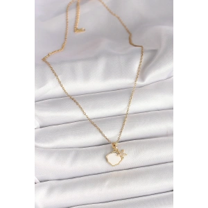 316L Çelik Gold Renk Zincir Sallantı Beyaz Mineli Deniz Kabuğu Zirkon Taşlı Deniz Yıldızı Figür Kadın Kolye
