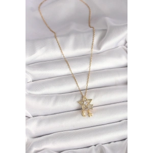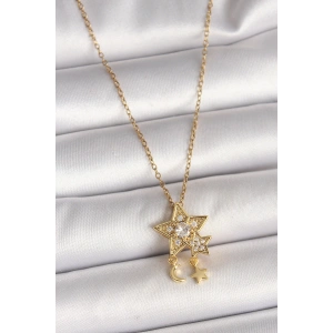 316L Çelik Gold Renk Zincir Zirkon Taşlı Yıldız Model Sallanı Ay Yıldız Detay Kadın Kolye