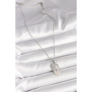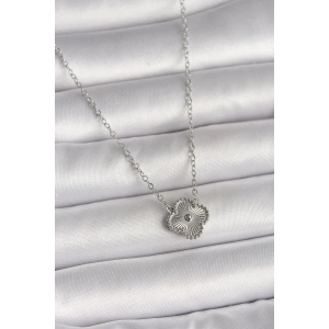 316L Çelik Gümüş Renk İşleme Detaylı Yonca Model Kadın Kolye