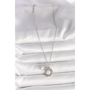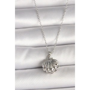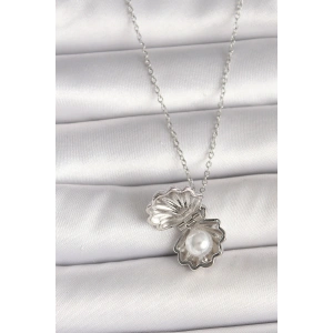 316L Çelik Gümüş Renk Zincir Açılır İncili Midye Model Kadın Kolye