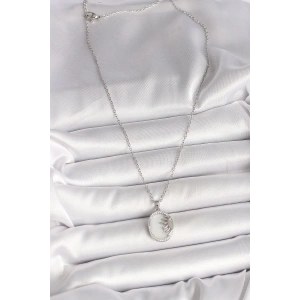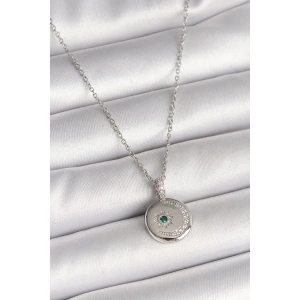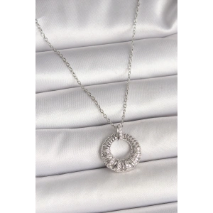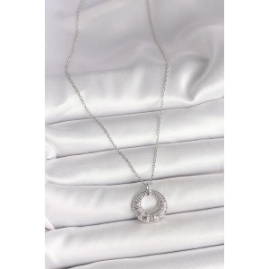 316L Çelik Gümüş Renk Zincir Zirkon Taş İşlemeli Daire Model Kadın Kolye