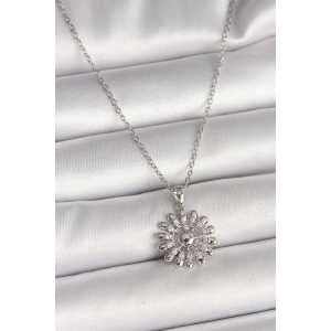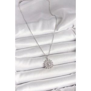 316L Çelik Gümüş Renk Zincir Zirkon Taşlı Güneş Model Kadın Kolye
