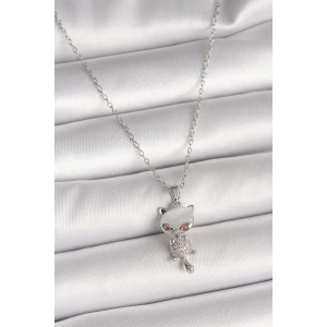 316L Çelik Gümüş Renk Zincir Zirkon Taşlı Kedi Model Kadın Kolye
