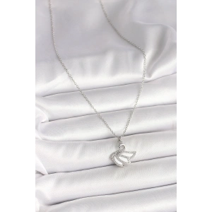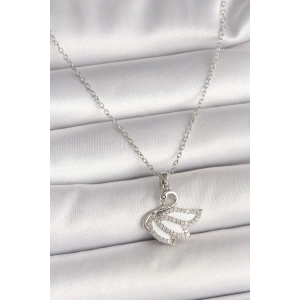 316L Çelik Gümüş Renk Zincir Zirkon Taşlı Kuğu Model Kadın Kolye