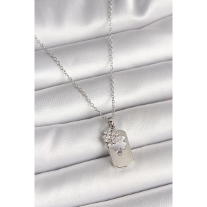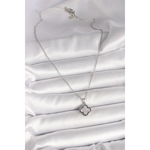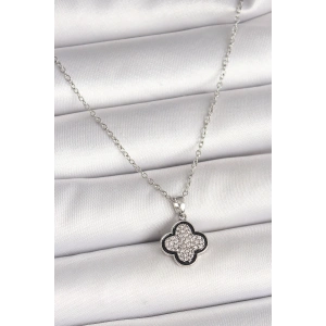316L Çelik Gümüş Renk Zincir Zirkon Taşlı Yonca Model Kadın Kolye