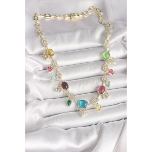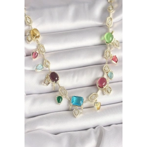 Pirinç Gold Renk Renli Zirkon Taşlı VIP Seri Kadın Kolye