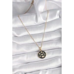 316L Çelik Gold Renk Zirkon Taşlı 12 Burç Madalyon Model Kadın Kolye