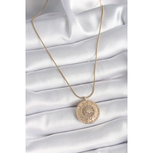 316L Çelik Gold Renk Güneş Model Vintage Kadın Kolye