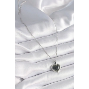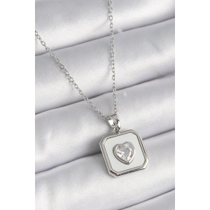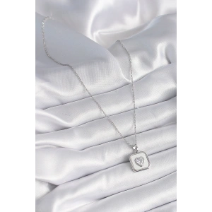 316L Çelik Gümüş Renk Kare Madalyon Kalp Zirkon Taş İşleme Kadın Kolye