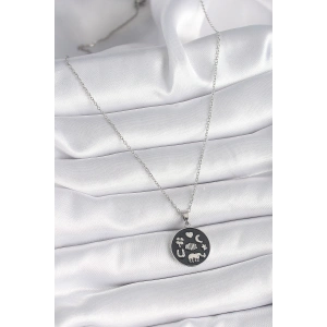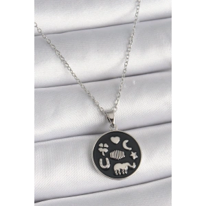 316L Çelik Gümüş Renk Zirkon Taşlı 12 Burç Madalyon Model Kadın Kolye