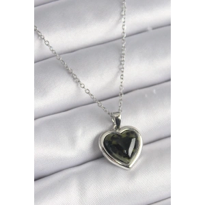 316L Çelik Gümüş Renk Yeşil Mineli Kalp Model Kadın Kolye