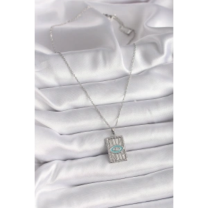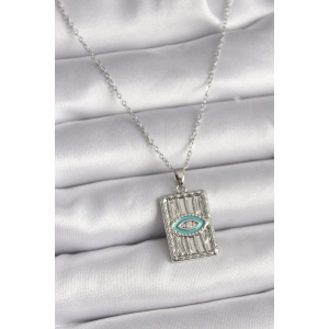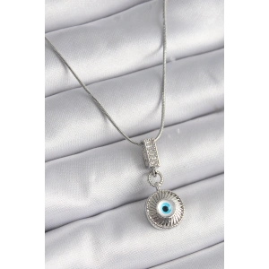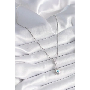316L Çelik Gümüş Renk Zirkon Taşlı Nazar Boncuk Model Kadın Kolye