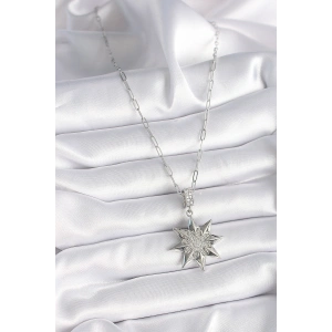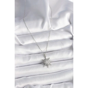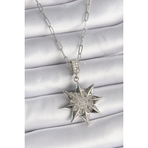 316L Çelik Gümüş Renk Zirkon Taşlı Kutup Yıldızı Model Kadın Kolye