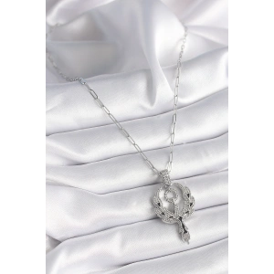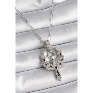 316L Çelik Gümüş Renk Zirkon Taşlı Anka Kuşu Model Kadın Kolye