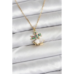 316L Çelik Zincir Gold Zirkon Taşlı Yılbaşı Temalı Kadın Kolye