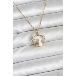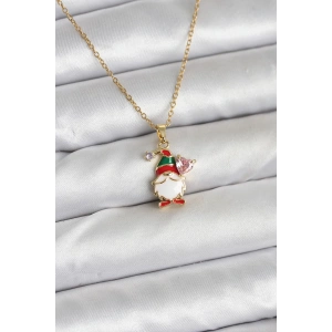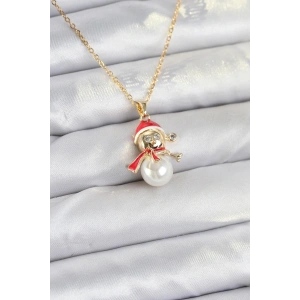 316L Çelik Zincir Gold Renk Kardan Adam Figürlü Yılbaşı Temalı Kadın Kolye