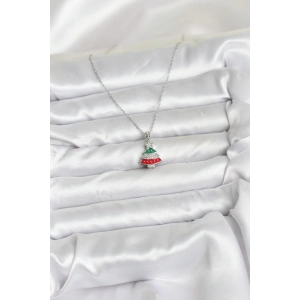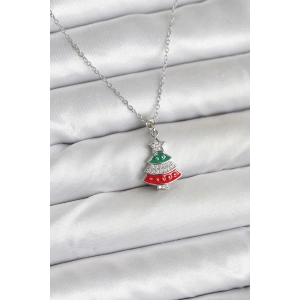 316L Çelik Zincir Gümüş Ren Çam Ağacı Model Zirkon Taşlı Yılbaşı Temalı Kadın Kolye