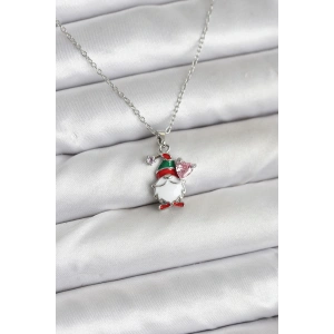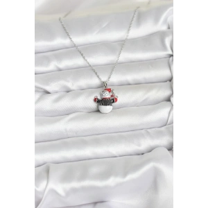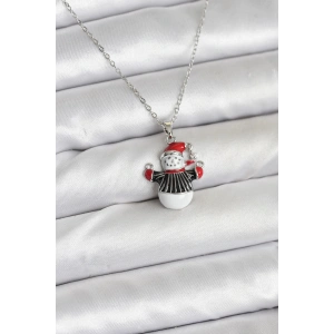 316L Çelik Zincir Gümüş Renk Kardan Adam Figürlü Yılbaşı Temalı Kadın Kolye