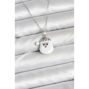 316L Çelik Zincir Gümüş Renk Şapkalı Kardan Adam Kafası Model Yılbaşı Temalı Kadın Kolye