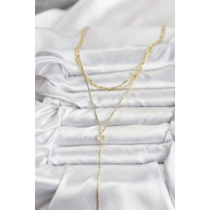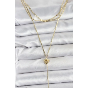 Pirinç Gold Renk Kalp Detaylı 3'lü Kombin Y Kadın Kolye