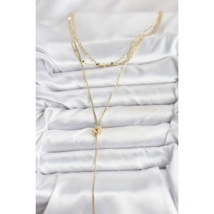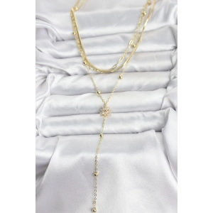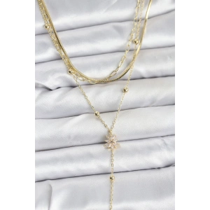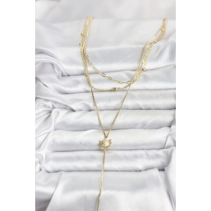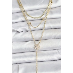 Pirinç Gold Renk Zirkon Taşlı Çiçek Model Detaylı 3'lü Kombin Y Kadın Kolye