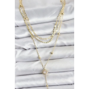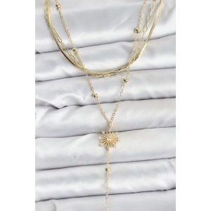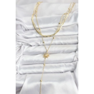 Pirinç Gold Renk Zirkon Taşlı Güneş Model Detaylı 3'lü Kombin Y Kadın Kolye