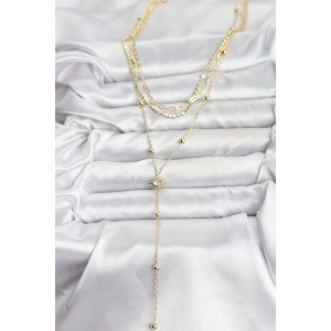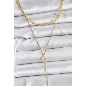 Pirinç Gold Renk Zirkon Taş Detaylı 3'lü Kombin Y Kadın Kolye