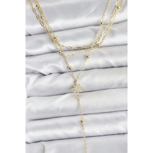 Pirinç Gold Renk Kutup Yıldızı Detaylı 3'lü Kombin Kadın Kolye