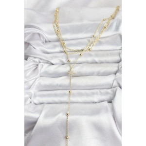 Pirinç Gold Renk Kutup Yıldızı Model Detaylı 3'lü Kombin Y Kadın Kolye