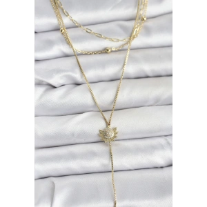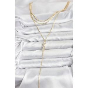 Pirinç Gold Renk Zirkon Taşlı Model Detaylı 3'lü Kombin Y Kadın Kolye