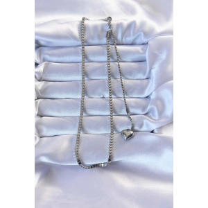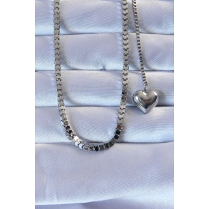 316L Çelik Gümüş Renk Küp Zincirli Kalpli Kolye