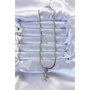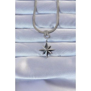 316L Çelik Gümüş Renk Zirkon Taşlı İtalyan Zincirli Kutup Yıldızı Kolye