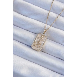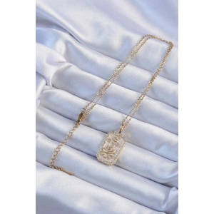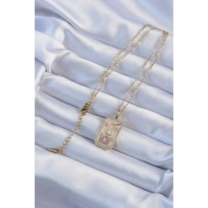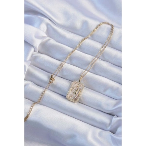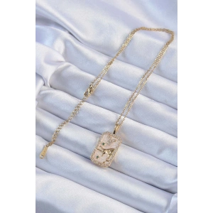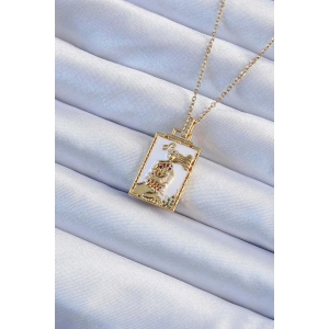 316L Çelik Zincir Altın Renk Zirkon Taşlı Çerçeveli Tarot Kolye