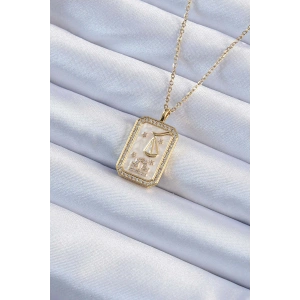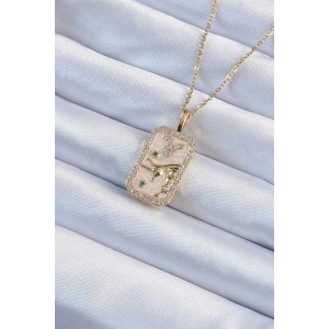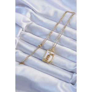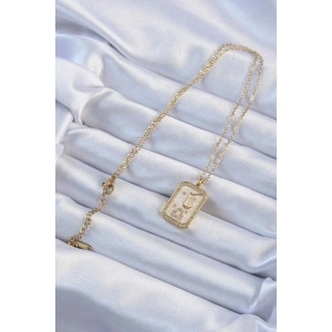 316L Çelik Zincir Altın Renk Beyaz Mineli Tarot Kolye